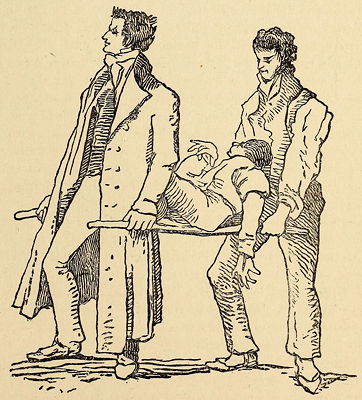 The following woodcut represents the humane manner in which cripples are conveyed from door to door in many parts of Ireland. The following description has been kindly furnished to the Author by a friend, who has frequently assisted in the conveyance, and takes no ordinary interest in the condition of the poor.