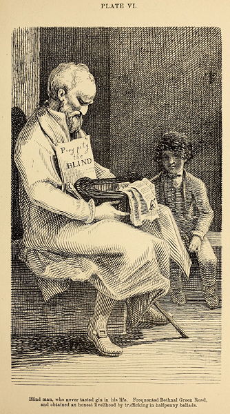 Blind man, who never tasted gin in his life. Frequented Bethnal Green Road, and obtained an honest livelihood by trafficking in halfpenny ballads.
