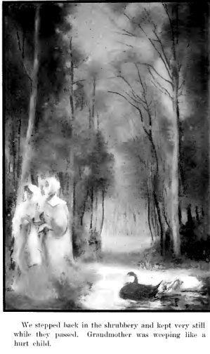 We stepped back in the shrubbery and kept very still while they passed. Grandmother was weeping like a hurt child |