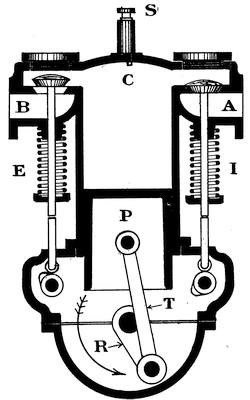 Indicated Horse-Power.—The horse-power which an indicator would show as being developed inside the cylinder of a petrol engine, above the piston, would be called the indicated horse-power, and should always work out a greater number than the brake horse-power or power available at the engine flywheel, because some of the power liberated from the combustion of the petrol within the cylinder is lost in friction of the piston and bearings.