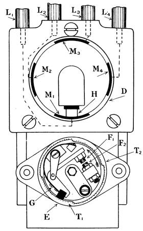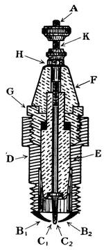 The low tension contact breaker lever may be jammed so that the make and break is inoperative, or one of the carbon brushes may have got broken. Occasionally one finds the magnets of the machine have lost their power; or there is some electrical defect in the armature or condenser. The battery may have become exhausted. The trembler blade may be stuck up.115 Water may have found its way on to the high tension electrode or into the safety spark gap.