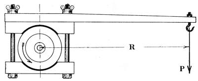 Example:—An engine being tested by a brake applied to the flywheel as shown in the sketch (Fig. 67) exerts a pull of 50 lbs. at a speed of 2,000 revolutions per minute. If the length of brake arm is 30 inches, calculate the brake horse-power developed.