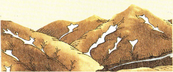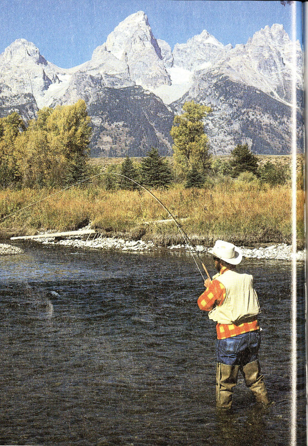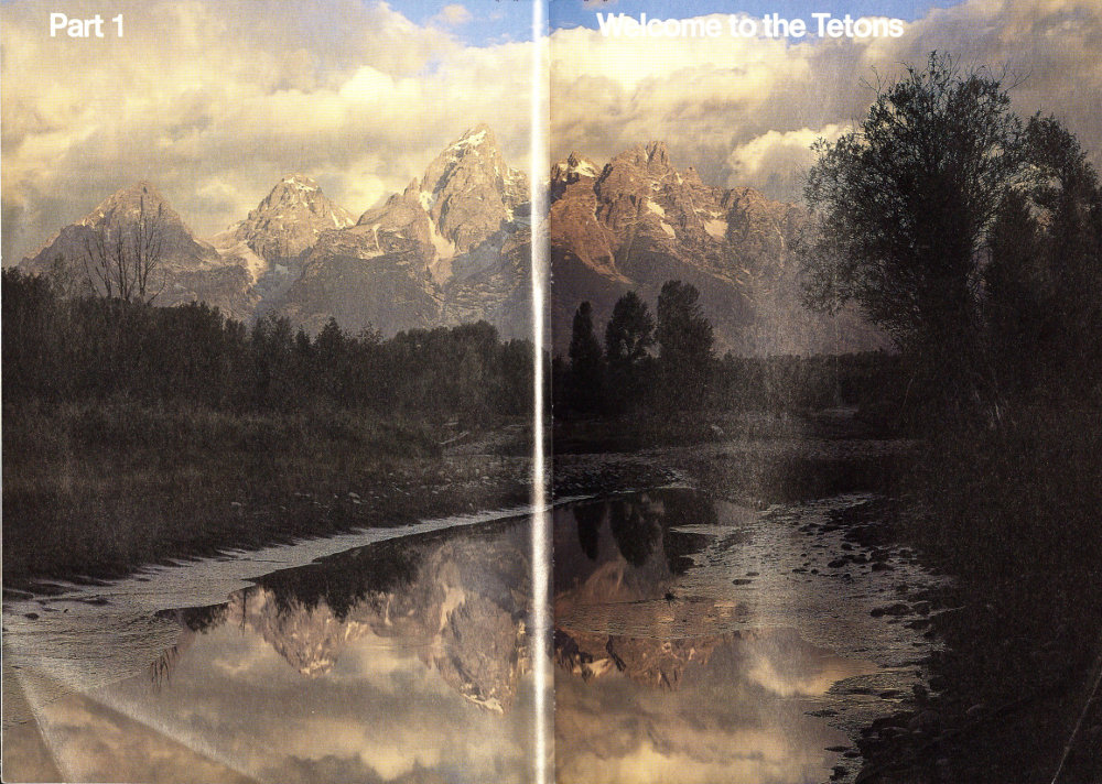 Those “other mountains” are the Yellowstone Plateau to the north, the Absaroka, the Washakie, and Gros Ventre, merging southward into the Hoback and Snake River Ranges. It is immediately clear why the first mountain men called this type of valley a hole. As the Snake winds its way south from its source in a high mountain meadow in southern Yellowstone National Park, into and out of Jackson Lake, it is joined by other streams: Pacific Creek, the Buffalo River, the Gros Ventre. All are bordered by cottonwood and aspen and spruce and fir forests. The scene is one of infinite variety, and in summer it 15 is aglow with wildflowers of every hue. When I first entered the valley in mid-July of 1927, I thought surely I was entering a fairyland.