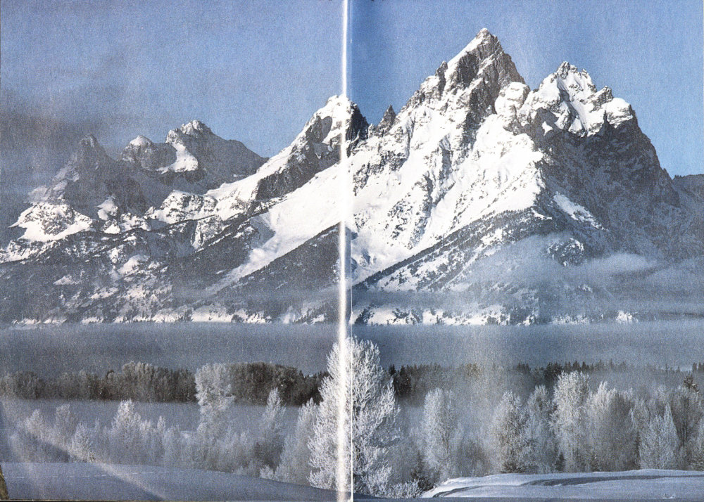 This is the Teton Range, but it is not the whole picture. The glaciers that during the Ice Age came through the whole valley left lakes as a row of jewels at the feet of the peaks: Phelps, Taggart, Bradley, Jenny, Leigh, and then finally Jackson lakes, through which the Snake River travels for some 17 miles southward. From the lakes the flat glacial floor extends to meet the river in mid-valley and beyond to all the other beautiful, though not quite so spectacular, mountains and hills that form the north, east, and south walls of the valley known as Jackson Hole.