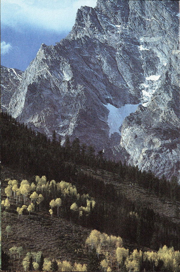 The geologic time scale is so vast we cannot imagine it. Most of us simply refuse to imagine more than a few thousand years: we find anything greater too inhibiting. The Ice Age ended its major glacial action about 10,000 years ago, the beginning of the Holocene or the Recent, as early man wandered the glacial ice margins. But seven-eighths of Earth history are tied up in the Precambrian Period, the period of formation of the Teton Range’s 3.5-billion-year-old rocks. By contrast, just east of Jackson Hole—Thermopolis on your Wyoming highway map—there is now forming the youngest rock in the United States, travertine. Further proof that geologic processes continue.