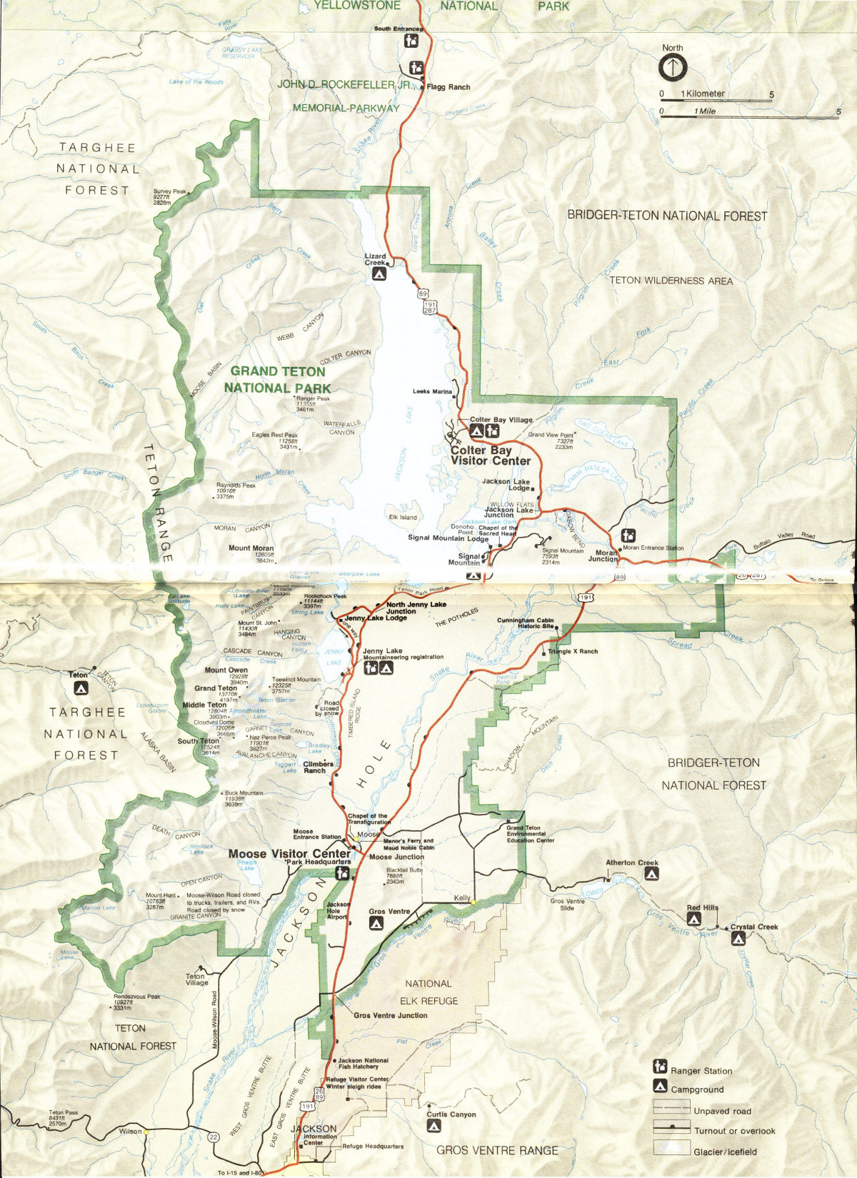 Teton National Forest, Teton Wilderness, and Targhee National Forest adjoin the park boundary. For information about hunting, fishing, backpacking, and campgrounds write or call the Forest Supervisor, Bridger-Teton National Forest, Box 1888, Jackson, WY 83001, (307) 733-2752, or Forest Supervisor, Targhee National Forest, Box 208, St. Anthony, ID 83445, (208) 624-3151.