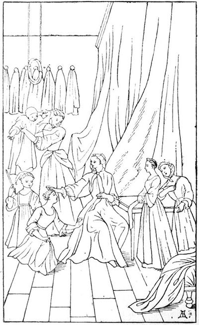 Receiving in bed — A lady's life — A fine lady's diary — Walking — Visiting — Tea-table scandal — Shopping — Daily church — Pets — Dancing — Books on ditto — A dancing-master 68