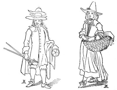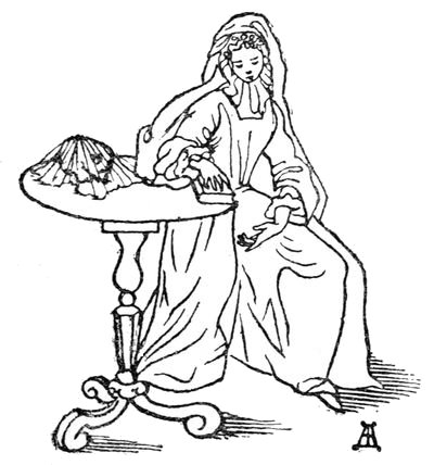 The Commode — Description of ladies' dress — The Petticoat — The Bodice — A costly wardrobe — Underlinen — Dressing like men — Scents — Patches — Patching Whig and Tory — Masks — The hood — High-crowned hats — Furs — Umbrellas — Pattens — The fan — Mobs — Shopping — Stuffs — List of Indian stuffs — Lace — Linens — Tallymen — Jewellery — Diamonds — Plate — Children's jewellery 123