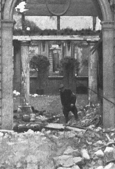 Dans le quartier de la gare j'ai vu, sur l'emplacement d'un grand immeuble, douze cheminées que les bombes et l'incendie ont respectées. Elles sont accrochées comme des nids et, sur certaines d'entre elles, des cafetières sont encore posées. Près de l'une, j'ai aperçu un réveille-matin.