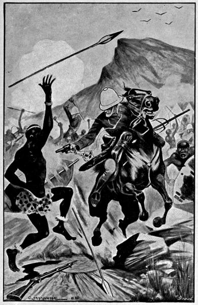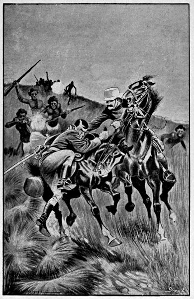| THE COLONEL HAD TO RIDE BACK … AND, WHILE ASSEGAIS AND SHOTS SPED PAST HIM, CARRY OFF THE DISMOUNTED MAN UPON HIS HORSE | 193 |