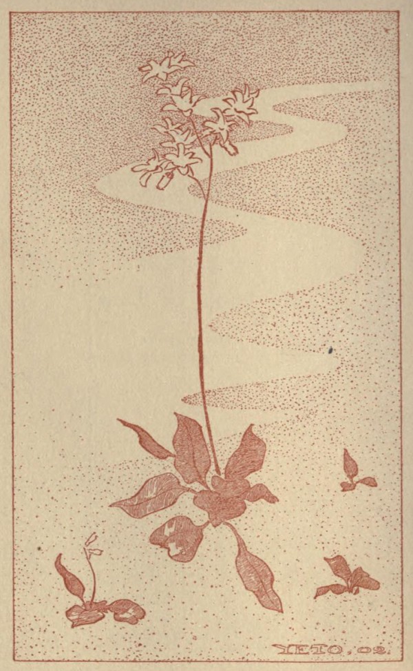 The fault is not altogether mine. I had been warned that if the creature were mated, he would cease to sing and would speedily die. But, night after night, the plaintive, sweet, unanswered trilling touched me like a reproach,—became at last an obsession, an affliction, a torment of conscience; and I tried to buy a female. It was too late in the season; there were no more kusa-hibari for sale,—either males or females. The insect-merchant laughed and said, "He ought to have died about the twentieth day of the ninth month." (It was already the second day of the tenth month.) But the insect-merchant did not know that I have a good stove in my study, and keep the temperature at above 75° F. Wherefore my grass-lark still sings at the close of the eleventh month, and I hope to keep him alive until the Period of Greatest Cold. However, the rest of his generation are probably dead: neither for love nor money could I now find him a mate. And were I to set him free in order that he might make the search for himself, he could not possibly live through a single night, even if fortunate enough to escape by day the multitude of his natural enemies in the garden,—ants, centipedes, and ghastly earth-spiders.
