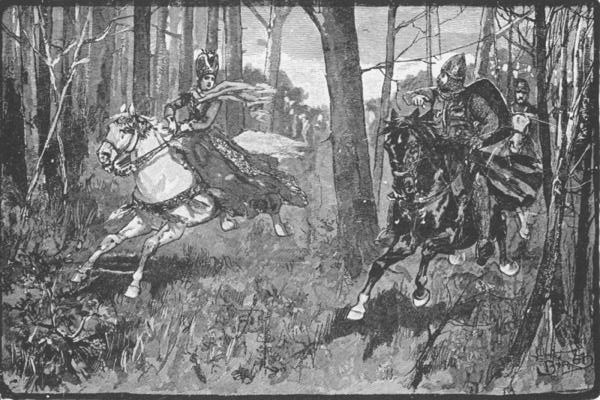 The robbers in the hallway were soon forced into this court-yard, and into the midst of the cotereaux Count Hugo, with the whole body of his followers, now boldly plunged. Such attacks as these, made by one or two knights with a few attendants against a much greater force, were very popular in those days of chivalry. For, whether the rash onslaught were successful or not, the glory was the same. And if the safety or honor of a lady happened to be concerned, the unequal combat was the more attractive to the knights. For a lady in those days was often the cause of a knight's fiercest battles and the subject of nearly all his songs. These combats, however, were not always quite so unequal as they seemed, for a knight clad from head to foot in armor was more than equal to three or four soldiers not so well guarded by steel plates and rings.
