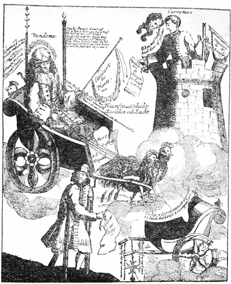 “L’Europe alarmée pour le Fils d’un Meunier.” (The plate in its first state) ▶ … Between pages 204 and 205