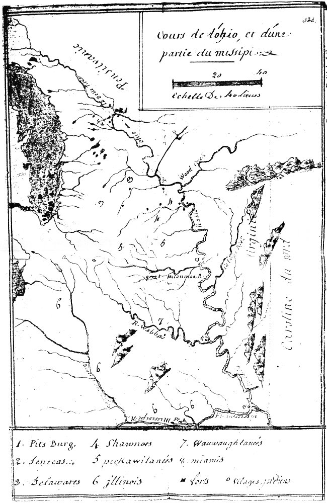 The English, far from confining themselves within the limits of the King of Great Britain’s possessions, not satisfied with multiplying themselves more and more on Rock River ... have more than that proceeded within sight of Detroit, even unto the fort of the Miamis.... John Pathin, an inhabitant of Willensten, has been arrested in the French fort of the Miamis by M. de Villiers, commandant of that post ... he entered the fort of the Miamis to persuade the Indians who remained there, to unite with those who have fled to the beautiful river [the Ohio.] He has been taken in the French fort. Nothing more is necessary.[54]