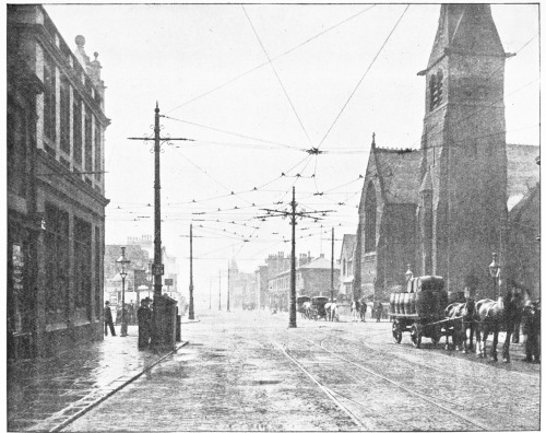 [7] One of the largest tramway schemes ever promoted is contained in the Nottinghamshire and Derbyshire Tramways Bill, which came before Parliament in March last. The routes have a total length of 80 miles, and pass through a district with a population of close upon three-quarters of a million. The idea is to connect, by means of electric tramways, the towns of Nottingham, Long Eaton, Derby, Ilkeston, Ripley, Alfreton, Sutton-in-Ashfield, Pleasley, Mansfield, Eastwood, Bulwell, and Hucknall Torkard.