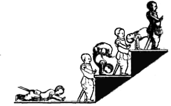 The earliest forms of moving puppets were set in motion by strings pulled by hand which were afterwards supplanted by cylinders turned by a winch, and the transition from that arrangement to the use of weights and springs was inevitable and was only a question of time.