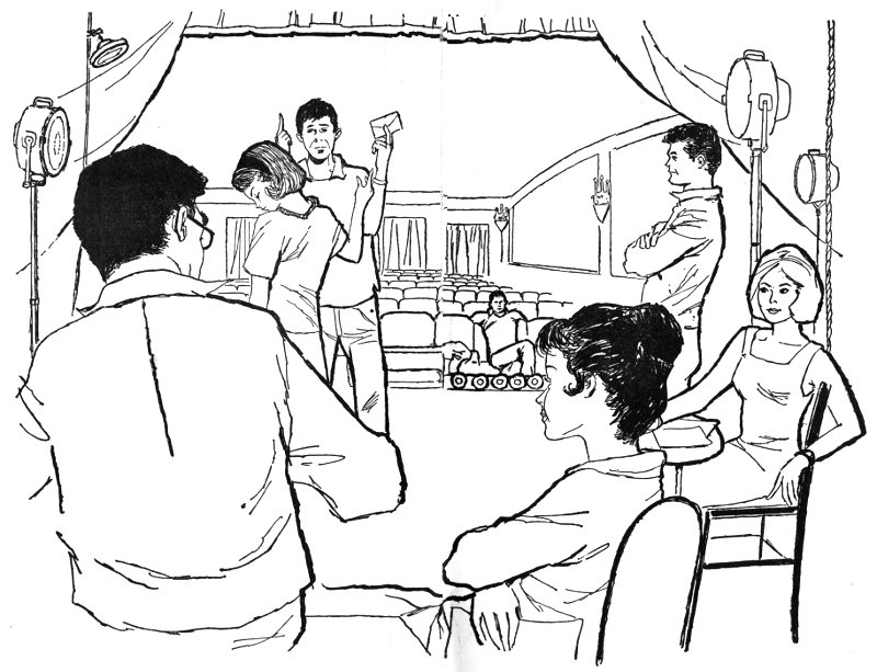 Peggy hardly remembered the first act. Her lines came automatically and she was too excited to know whether it was going well or badly. By the second act, that feeling had passed and she was beginning to wonder. Her big scene—the one with Tom—was coming up, and as she took her position behind the familiar door, she had the same sensation of nervous fear she had had the day she first tried out for Craig Claiborne.