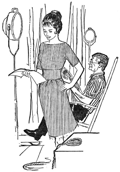 “Meanwhile, there’s another thing. Marcy Hubbard has left the cast.” He grinned at them cheerfully. “All in all, I think you’ll admit it was quite a night. She asked to be relieved of her contract because she said she had a very attractive offer from Hollywood. I was more than happy to do what she asked because filling in for Marcy was no trouble at all.” He turned to Peggy with a smile. “Peggy,” he announced, “you’ll be playing the part of the young daughter in Innocent Laughter.”