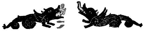 Before that accursed Bishop Tafuri turned it into a white-washed cavern the old chroniclers exhausted their adjectives in describing the glories of Saint Pantaleone’s Cathedral. The richness of its sixteen enormous columns of verd antique; its raised choir with fifty-two stalls of walnut-wood, carved with incredible richness; its high altar of alabaster under a marble baldachino glowing with mosaics and supported upon huge red Egyptian Syenite columns—its purple and gold Episcopal throne; its frescoed walls, its silver 34lamps and rich tombs, its pictures and shrines and hangings—all pitched into the scrap heap by that abominable prelate, save only this fine pulpit, and the Ambo. The Ambo gives itself wholly to the chronicles of the prophet Jonah. On one stairside he leaps nimbly and eagerly down the wide throat which looks so reluctant to receive him, as if suspecting already the discomfort to be caused by the uneasy guest. But Jonah’s aspect is all of a careless gaiety; he is not taking this lodging for more than a day or two, and is aware that after his brief occultation his reappearance will be dramatic and a portent. On the opposite stair it happens as he had prophetically foreseen, the mosaic monster disgorging him with an air of mingled violence and exhausted relief.