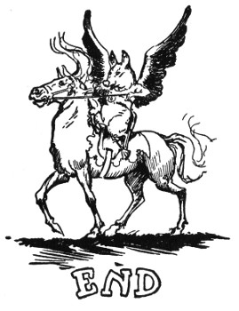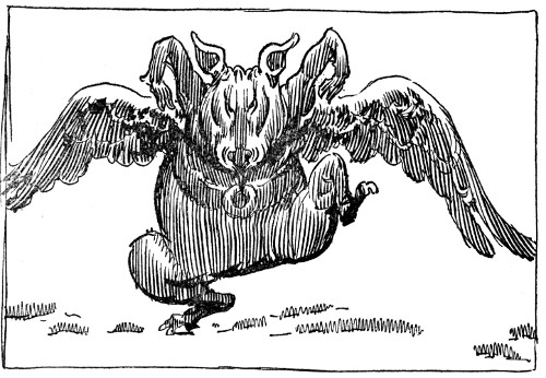 "Be glad to! Charmed! And trust me to do it right." Swelling up with importance and pride, Pigasus flew out the window before Dorothy had time to open the door. A few moments later, the company in the Wizard's laboratory heard him calling everyone to follow him to the Throne Room and hear the most startling news since Dorothy killed the wicked Witches of the East and West.