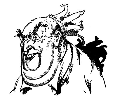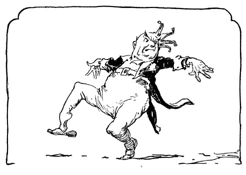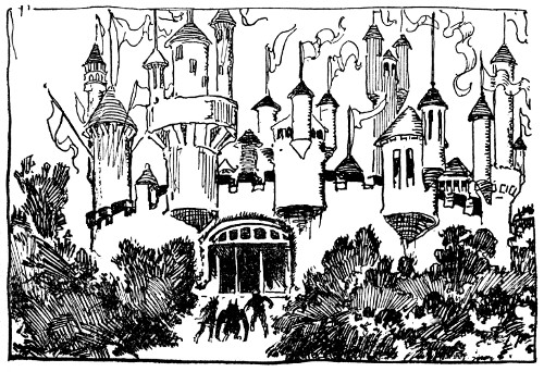 Now Skampavia, I must tell you, is roughly divided into seven counties, and over each county Skamperoo had set a Supervisor whose duty it was to govern the province and to turn over to him one-third of all produce and merchandise in that county. To save time, and easily identify them, the supervisors were known by the size of the counties they governed. For instance, the Supervisor of the First County, which was one mile wide and ten miles long, was called Onebyten; the Supervisor of the Second County Twobyfour; and the others were variously known as Threebysix, Ninebyfive, Eightbyeight, Fivebynine and Fourbyseven. Twice a year the Supervisors rode into the capital with their tribute, and now, down in the courtyard, the seven tremendous Skampavians were in a perfect pitched battle, helped out by all the guards and palace servants.