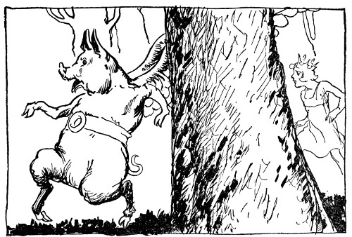 "Well," he observed with a jaunty flick of his tail, "now that you have the famous wishing emeralds, I suppose you are satisfied and we may as well go. Come along, Skamperoo, you will get nowhere in an argument with a pig. Just casting pearls before swine, you know, and he already has our emeralds!"