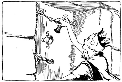 "Come down, you fat scoundrel!" roared Skamperoo, dancing up and down like a dervish, while the poor Kitchen Boy, outraged by the way both Skamperoo and Bitty Bit had rushed upon him, burst into loud sobs and rushing out the still open door, ran crying down the corridor. Slamming the door and locking it after him, Bitty Bit rather anxiously waited for Chalk's next move, and as usual Chalk was quite prepared and ready to make it.