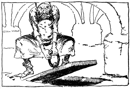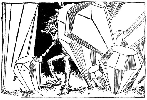 "At this moment Matiah is lying in a senseless condition in the underground chamber beneath this castle," Bitty Bit told them solemnly and without opening his eyes. "Soon after Skamperoo left for Oz, the merchant was driven out of Skampavia by Pinny Penny, whom Skamperoo had made King. Matiah, furious to think the apparently stupid sovereign had outwitted him, bribed an eagle to carry him across the desert, arrived at the Emerald City and soon afterward managed to really steal the necklaces from Skamperoo. Discovering beneath the cellar the excavated chambers of the old Gnome King, he retired to this quiet spot to again experiment with the emeralds. Needing another person to help, he seized the Kitchen Boy who had come to the cellar for supplies and forced him to assist in his experiments. How soon he might have discovered the real trick of the chains I cannot say, but our own arrival and Gloma's powder of darkness happily interrupted him. The Kitchen Boy, who had kept his eyes glued to the stone steps and trapdoor during the entire morning, made an immediate dash for freedom and managed to escape in spite of the darkness. Matiah, not so fortunate, rushed into a stone pillar and knocked himself senseless. He's still lying there, and I suggest that your Majesty deal with him at once."