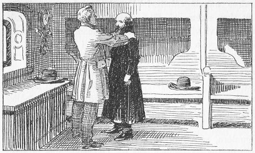 Och länsman gjorde, som han sa’ — berättade kaptenen sedan för flickorna — han, som annars alltid skulle ha sin egen vilja fram. Jansson i Vedbacken förklarades för häktad men fick en timme på sig att ta avsked av sin hustru och ordna sina angelägenheter.