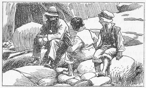 »Ja, det ä’ en sak, som återstår för Jansson att förklara. Och förbindelsen med tjyvarna — och smuggelgodset på Örnhuvud — och gossarnas försvinnande. Vill inte Jansson lätta sitt samvete och åtminstone yppa, vart Inge och Anders tagit vägen?»