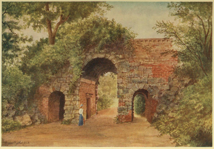 This prince, we know, died young, according to one tradition through rash bathing in the Thames; but a modern physician has diagnosed the indications of his illness as typhoid fever. Richmond then passed to his brother Charles, who was much at home here and at Hampton Court. He, as king, made a new enclosure, the present Richmond Park, a hunting-ground nine miles round, formed by somewhat high-handed expropriations recalling the harsher dealings of William Rufus with the New Forest, and going to make up this king’s unpopularity. When poor Charles himself had been hunted down, the royal abode at Richmond was sold to one of the regicides, Sir Gregory Norton, the new Great Park being given over by Parliament to the citizens of London, who, at the Restoration, restored this gift to Charles II. with a courtly declaration that they had kept it as stewards of his Majesty. The Park was now put under a Ranger; and the Palace fell into neglect, though, according to Burnet, James II.’s son, the Pretender, was nursed in it. Nothing of its old state remains but the Gateway on Richmond Green, above which may be traced the arms of England, as borne by Henry VII. The adjacent[8] row of houses, still known as the “Maids of Honour,” also the cheesecakes of that ilk, appear to record the later day when Queen Caroline’s home at Richmond was so cramped as not to allow of her ladies “living in.”
