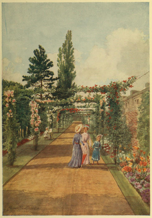 The village began to grow apace, old houses being pulled down or enlarged, and new ones built towards Richmond along what is now the thoroughfare of a big London suburb. The population was swollen by all sorts of[123] newcomers—from ladies-in-waiting to gardeners, from preceptors to soldiers, for a guard was kept at Kew House, near which barracks had to be provided. One winter, the King is said to have found work for his idle garrison by setting them to make the Hollow Walk, now filled with such a fine summer show of rhododendrons.