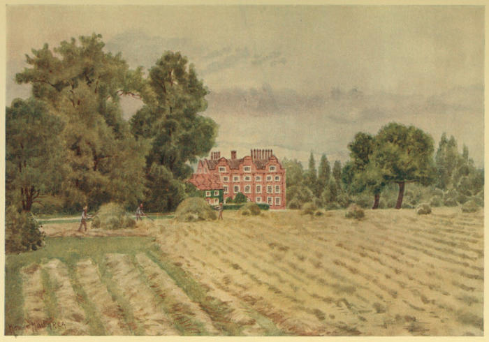 In Henry VIII.’s reign, the Crown gained a new seat in this neighbourhood, Hampton Court, too pretentious monument of Wolsey’s pride. At the first signs of the storm that was to wreck him, the swelling Churchman took in sail by giving up his palace to the king, who in return allowed him quarters in one of the royal lodges at Richmond, from which, as the king’s[4] displeasure deepened, he was banished, first to Esher, finally to his archiepiscopal northern diocese. Within the hunting-park formed by Henry about Hampton, was a lodge at Hanworth that became the home of his wife Catherine Parr, when she had the luck to be his widow.