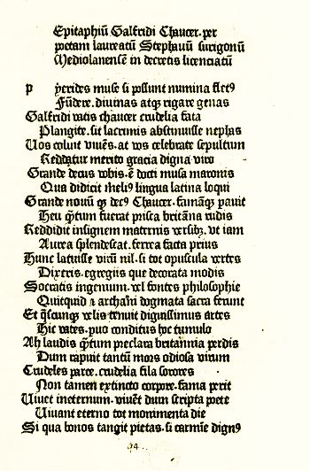 In a copy of the Fructus Temporum printed by Julyan Notary in 1515, which belonged at one time to a Mr. Ballard of Cambden, in Gloucestershire, a friend of Joseph Ames, the bibliographer, [pg 87] there was written in a very old hand the following epitaph on Caxton: