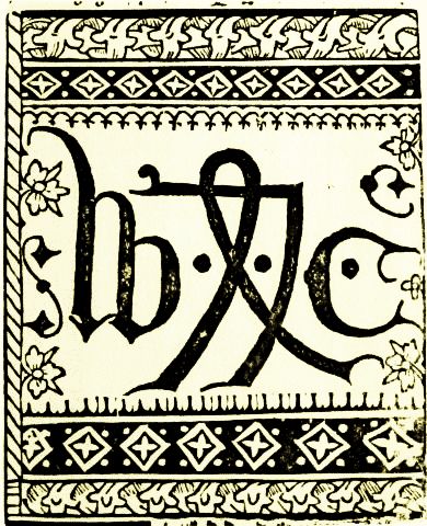 One point which gives this book a peculiar interest is, that in it is found for the first time Caxton's well-known device. It consists of his initials, divided by his merchant's mark, with a deep ornamental border at top and bottom. Many ingenious writers have attempted to read into this mark several items of information. The merchant's mark they say is not a merchant's mark at all, but the figures 74 significant of the time when he began to print. Two small ornaments shaped like an S and C stand for Sancta Colonia, where he learned the art of printing. The mark is, however, merely an ordinary merchant's mark, which in some shape or another all printers introduced into their devices, and the letters S C merely ornamental flourishes.