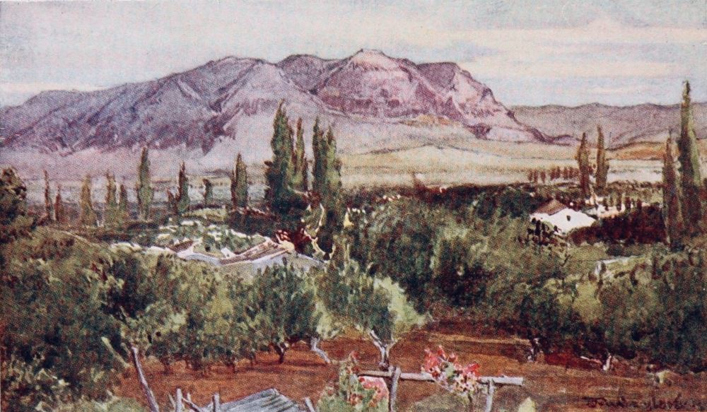If this be true of the near, it is doubly so of the distant, landscape. In a country so mountainous and so sheer-cleft as Palestine, distant views are seen for the most part as vistas, the “land that is very far off” revealing itself at the end of some V-shaped gorge or towering over some intermediate mountain range. Of course distant views are faint in all lands, but in Palestine the clear air keeps them distinct with clean-cut edge, however faint they are. Thus there is perhaps{12} nothing more delicate and spirituel in the world than those faint dreamlike mountains in the extreme distance of Syrian vistas—the hills east of Jordan grey, with a mere suspicion of blue in them, or the lilac and heliotrope mountains of the desert which form the magic background of Damascus looking eastward.