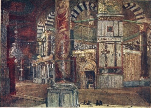 All this reaches its keenest point in connection with men’s worship; and what a long succession of worshippers have left their traces here! The primitive rock-hewn altar, the Jewish synagogue, the Greek temple, the Christian church, the Mohammedan mosque—all have stood in their turn on the same site. His must be a dull soul surely who can feel no sympathy with the Moslem, or even with the heathen worship. These religions too had human hearts beating in them, and wistful souls trying by their help to search eternity. To the wise these dead faiths are full of meaning. Through all their clashing voices there sounds the cry of man to his God—a cry more often heard and answered than we in our self-complacency are sometimes apt to think.