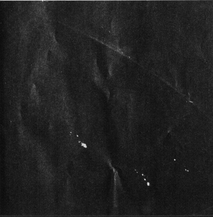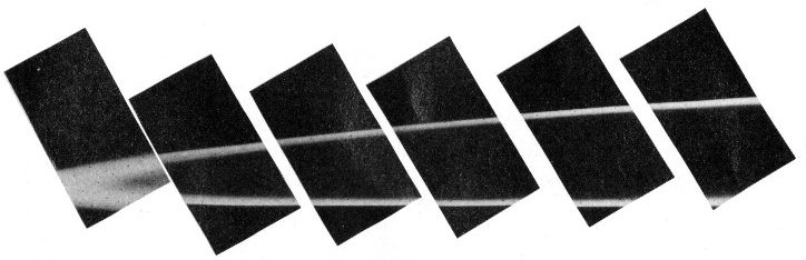 The first evidence of a ring around Jupiter is seen in this photograph taken by Voyager 1. This photograph was part of a sequence planned to search for such rings around Jupiter. The multiple image of the extremely thin, faint ring appears as a broad light band crossing the center of the picture. This multiple image and the elongated, wavy motion of the background stars are due to the 11-minute, 12-second exposure and the very slow natural oscillation of the spacecraft. The ring, which is in Jupiter’s equatorial plane, is invisible from Earth because of its thinness and transparency and because of Jupiter’s brightness. The black dots in the picture are calibration points in the camera.