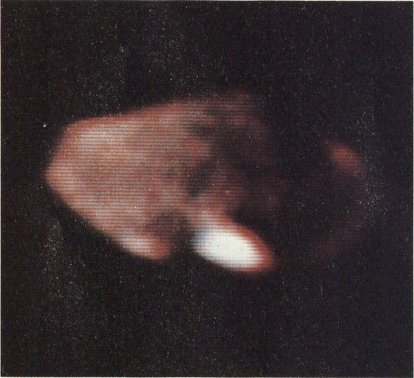 The pictures in this book were taken by a shuttered television-type camera. Each picture is composed of 640,000 dots, which were converted into binary numbers before being radioed to Earth. When the signals reached Earth, they were reconverted by computer into dots and reassembled into the original image. Most of the color pictures are composed of three images, each one taken through a different color filter: blue, orange, or green. The images were combined and the original color was reconstructed by computer. The computer eliminated many of the imperfections that crept into the images, and enhanced some of the images by emphasizing different colors.