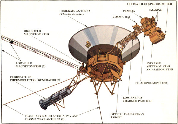 The Voyager spacecraft are unique in many respects. Since their journeys are taking them far from the Sun, the Voyagers are nuclear powered rather than solar powered. The Voyagers are the fastest man-made objects ever to have left Earth. In fewer than ten hours, they had crossed the Moon’s orbit. This compares to about three days for an Apollo flight and one day for the Mariner and Viking spacecraft. Their launches marked the end of an era in space travel—the end of the planned use of Titan/Centaur launch vehicles. With the advent of the Space Shuttle in the 1980s, future spacecraft will be launched from the Shuttle Orbiter.