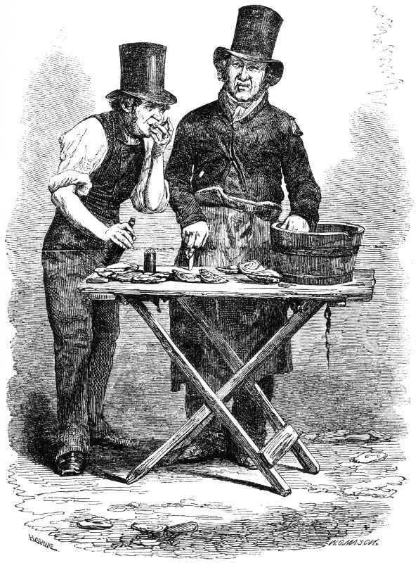 [9] The hot-eel trade being in conjunction with the pea-soup, the same stall, candles, towels, sleeves, and aprons do for both.