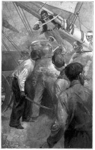 311“Here’s another rascal who’d rather hang than drown,” said one to the other. Then loudly to the man aft: “We’ve got him, sir.”