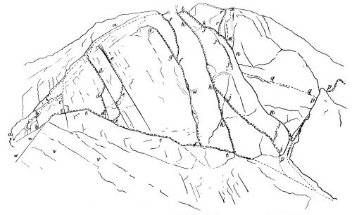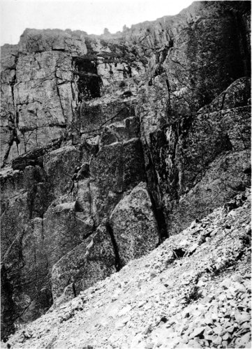 When we commenced the ascent, which proved very easy—I believe we went up the easiest way—the dark, slim young fellow somehow naturally assumed the lead. Before we started he had discovered that I had been to Switzerland and had done some climbs there, so he was very modest about his own powers. A few seconds on the rocks dissipated all doubt. With great confidence and speed, climbing cleanly and safely, he soon showed he was no ordinary climber. I had been out with some very tolerable Swiss guides, but never before with a man to whom rock-climbing seemed so natural and easy. My curiosity was excited. He could not be one of the great climbers, for he had never been out of the British Islands, but he could climb. x