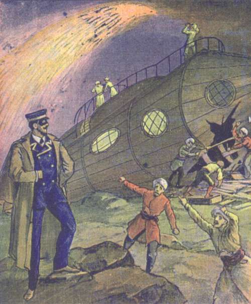 Grauenvoll war der Anblick, alles schien in Feuer getaucht zu sein. Die furchtbare Schnelligkeit des Weltenfahrzeuges aber rettete den Koloß, der jetzt in den luftleeren Raum hinauseilte.