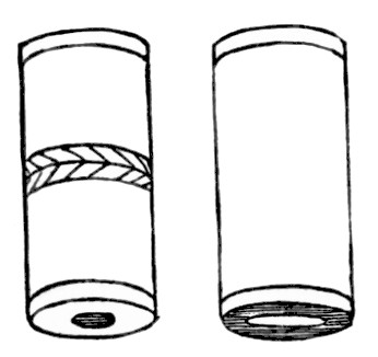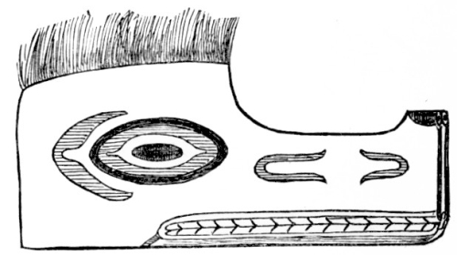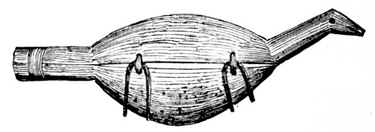 The other game of the men is with small bones, two inches long and a half an inch in diameter, or sometimes they are two and a half inches long and an inch in diameter. Sometimes only one of the small ones is used, and sometimes two, one of which is marked. They are passed very quickly back and forth from one hand to the other, and the object is for the opposite party to guess in which hand the marked one is. An accompaniment{55} is kept up by the side which is playing by singing and pounding on a large stick with smaller ones. With both of these games occasionally the large drum is brought in, and tamahnous songs are sung, so as to invoke the aid of their guardian spirits.