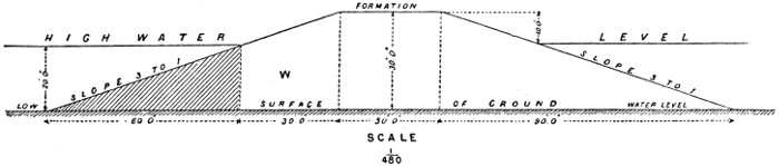 Provided these points are remembered and the usual precautions taken in forming a river-bank to make it thoroughly sound and homogeneous, a slip or subsidence of serious moment is improbable.