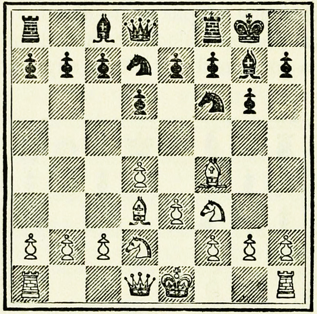| 8. K Kt—K2 | Castles | 8. Ktge2 | O—O |