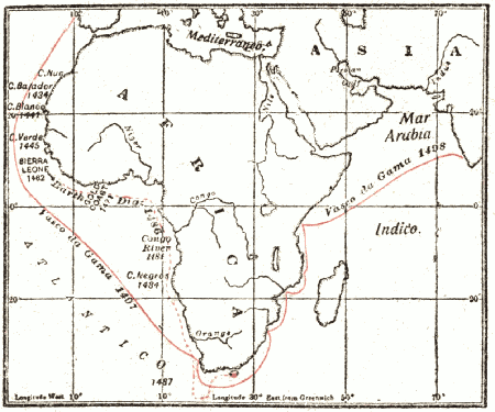 [507] Barros, Da Asia, lec. I, lib. III, cap. IX y sig. Lollis, op. cit., pág. 65 y sig. Asensio, op. cit., cap. IV, pág. 66 y sig. y referencias. Bourne, op. cit., pág. 15 y sig. y sus notas. Winsor, op. cit., cap. VI, VII, pág. 102 á 148 y sus notas, etc., etc.