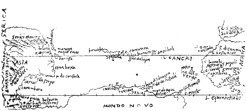 [503] Eneas Silvius, Historia Rerum Ubique Gestarum (Venice, 1477). Ailly, Imago Mundi (Impresa entre 1480 y 1484). Los viajes de Marco Polo que pudo ver Colón, fueron los de la edición de Amberes, 1485 (?). Vse. Lollis, Vita di Colombo, pág. 63 y sigtes. Thacher, Columbus III, pág. 462 y sig., etc.