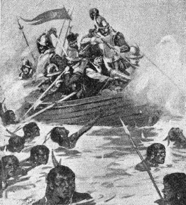 [588] Gunther, Zeitalter der Entdeckungen, pág. 75, etc. Lord Stanley, First Voyage, etc., pág. 193 y sig. Bourne, op. cit., pág. 123 y sig. Guillemard, Magellan, pág. 163 y sigtes. y sus referencias. Diario de Francisco Alvo (Ms. Archivo Indias), Rel. Viaje Santa María de la Cabeza, pág. 188 y sigtes. Oviedo, Hist., pte II, lib. XX, cap. II, fol. 13. Pigafetta, cap. III y sigtes. y Maximiliano cap. II, etc., en Ramusio, Viaggi, etc., fol. 390 y sig. Herrera, Dec. II, lib. IV, cap. IX y sigtes., etc., etc.